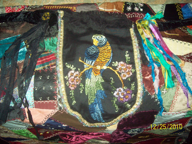 Found an amazing Artist and kindred Spirit named Tina Moll selling her work on E-Bay and purchased this fabulous Bohemian Parrot Belt from her which I intend to convert into a Fanny Pack Bag and put my own spin on it. I do feel as though I'm channeling Johnny Depp when I'm wearing it and who doesn't want to be all over THAT!!!??? *swoon and a wink* The luxurious French Vintage fabrics and intricate Needlepoint Art makes me feel like a rather decadent Pirate, it definitely has Boheme Gypsy flair to it and it's so very ME that I couldn't believe my good fortune at winning the auction. Dear Tina was so patient and understanding, as with the hectic schedule of the Holidays I completely lapsed and almost forgot I had a bid out on something just prior to Christmas! *Gasp... ah, old age don't come by itself LOL* Too many irons in the fire and even though this was a to-die-for piece I was swooning over, it got pushed to the dark recesses of my memory banks for a brief period of time... and then... I remembered... OH NO... I felt so badly that I'd caused a delay in checking in to see if I'd been the lucky winner... acknowledging my win and sending in my payment... on a normal day I would have been gazing at the last few minutes of the auction like a vulture, with my finger poised above the PayPal button! *wink* I've since corresponded with this talented Artist and I'm flattered that she's paid a visit to my humble little Blog, I hope she comes back often... I hope to see more of her amazing work available...