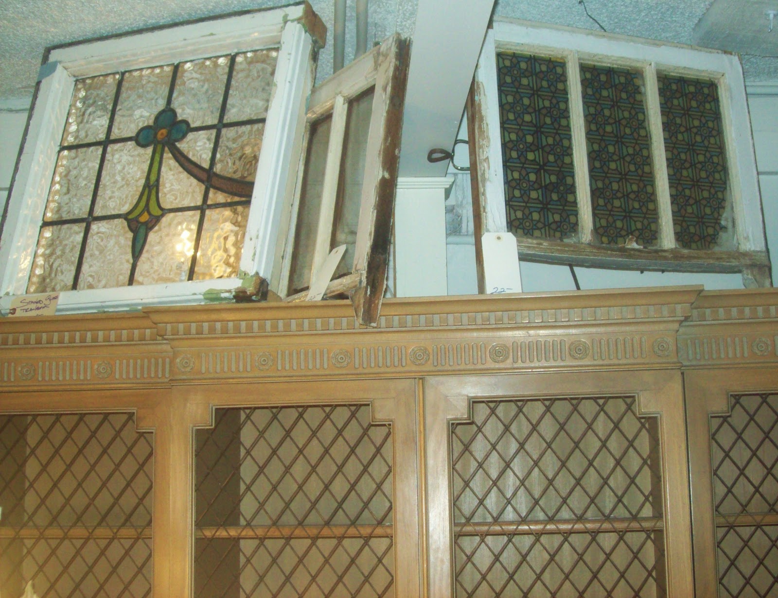 Architectural Salvage abounds... I Heart Old Salvage Windows... especially Stained Glass ones!
