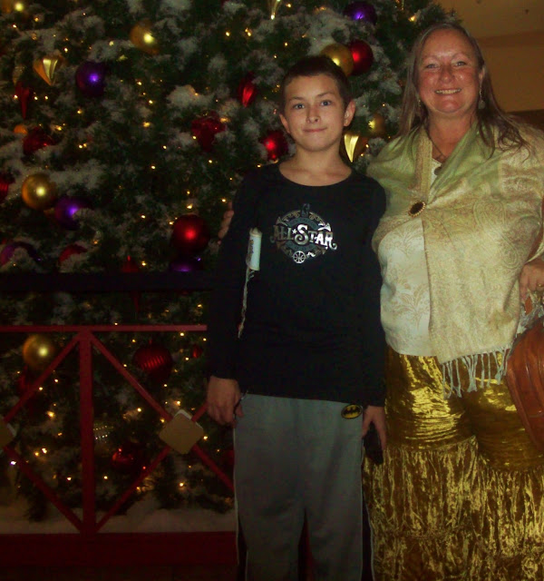 Another Mandatory Tradition until you're too large to do it anymore is going to visit Santa and sit on his lap for the Holiday Photo. *Winks* The Son was only slightly older than Prince R when he outgrew obliging me and began refusing... so I know I don't have much time left with the G-Son participating... could be the last year in fact... as you can see by his Grimace, which was his best attempt at Smiling when you're 11 and your Gramma makes you sit on Santas lap with your little Sister in front of a whole Mall full of people. *LOL* I was fortunate that his Mother and her Friends were Shameless and used to dress like they were going to a Club and sit on Santas lap until they were well into their late Teens ... I don't think Santa minded *LOL* and it was hilarious and Fun... I cherish those Photos. Yeah, their Mother is as much a Diva as Princess T... the apple didn't fall far from the tree... *Smiles*