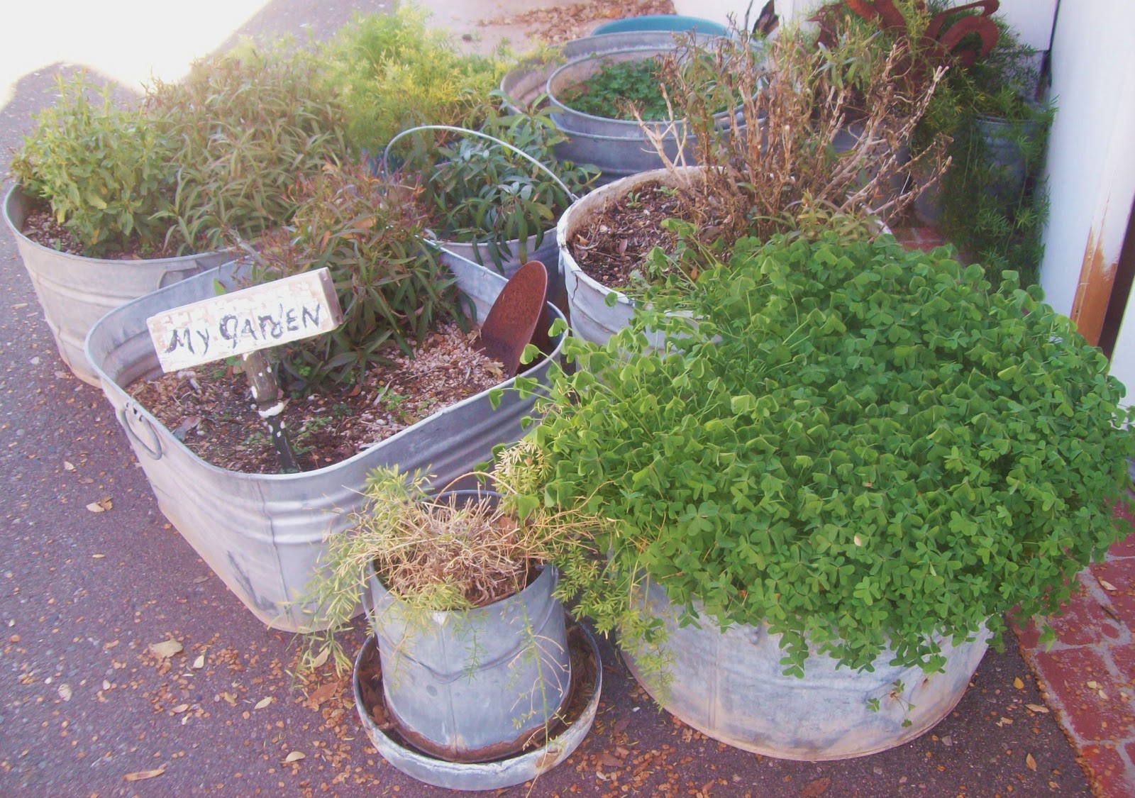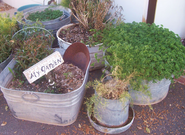 I Loved this Collection of Galvanized Pieces used as Planters and grouped together.