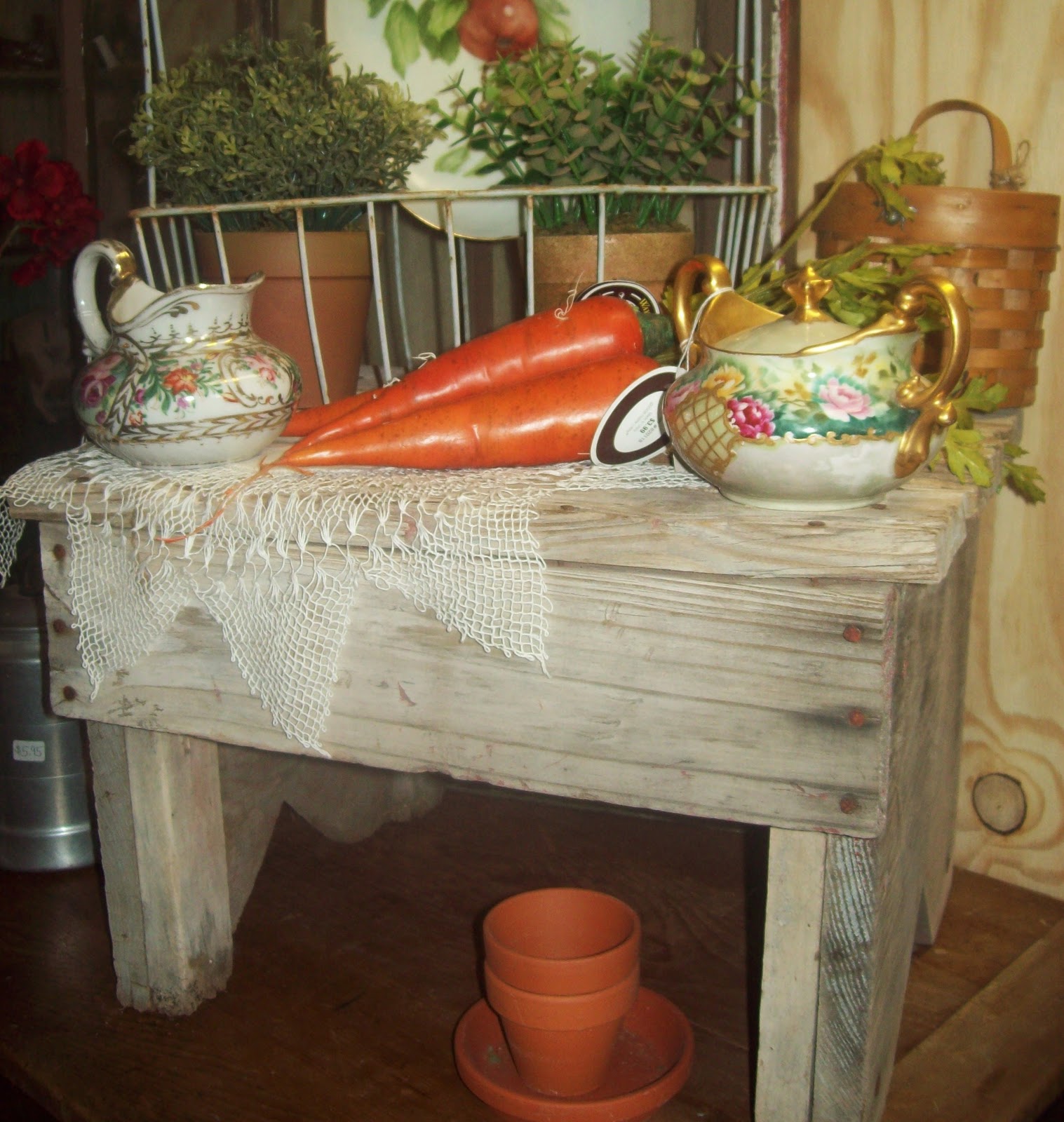 It was virtually impossible to choose a favorite piece... thankfully I no longer have any space in my Kitchens for any more large Furniture or I'd be wanting it ALL!!! *Smiles* These Primitive Rustic functional pieces Fresh from the Farm are getting harder to find, but Margie (Cee Cee) had hit the Motherlode in Sourcing Rustic Charm for your Farmhouse Kitchen & Garden Style decorating.