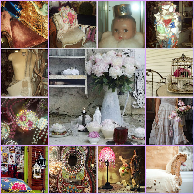 So... what were some of your Favorite and least favored Trends in 2011 my Friends? I was digging the Deconstructed Style of Furniture & Lampshades, Industrial & Agricultural Salvage, Vintage Suitcases, Gypsy & Kilim Style Cowboy Boots, Fedora Hats coming back into Style, Steampunk & Altered Art Jewelry & Bottle Creations, Vintage Mannequins, Sage & Sepia hues and Lighting Fixtures made of Galvanized Metal Objects of all sorts. The overall Styling of 2011 appealed to me actually, and luckily I had procured many of these types of items prior to the explosion of popularity, so I was pleased not to have to pay a premium for the majority of what I have that had a surge and gained in popularity.
