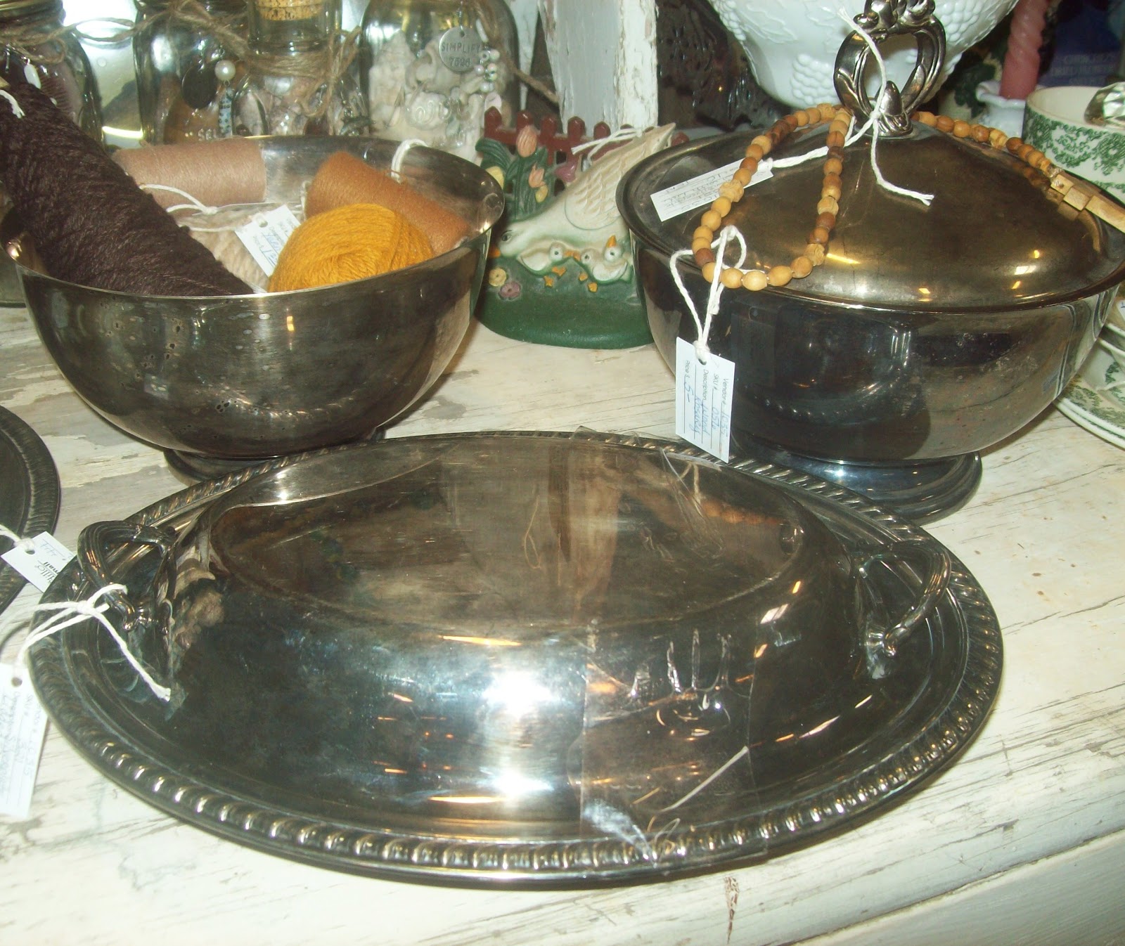 And offering most of my finds in my Booth means that right now there is an abundance of Tarnished Silver Inventory along with the other mixture of Found Treasures I'm stocking it with. Sorry about the Tape... sadly I have discovered that though it's not aesthetically ideal, some items that come in two pieces or parts will get separated without it & sometimes drift off to perhaps that place where socks go when you're doing Laundry?!? *LOL*