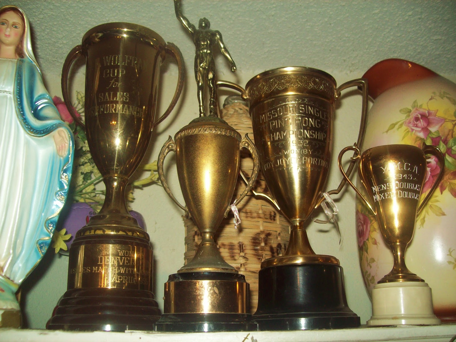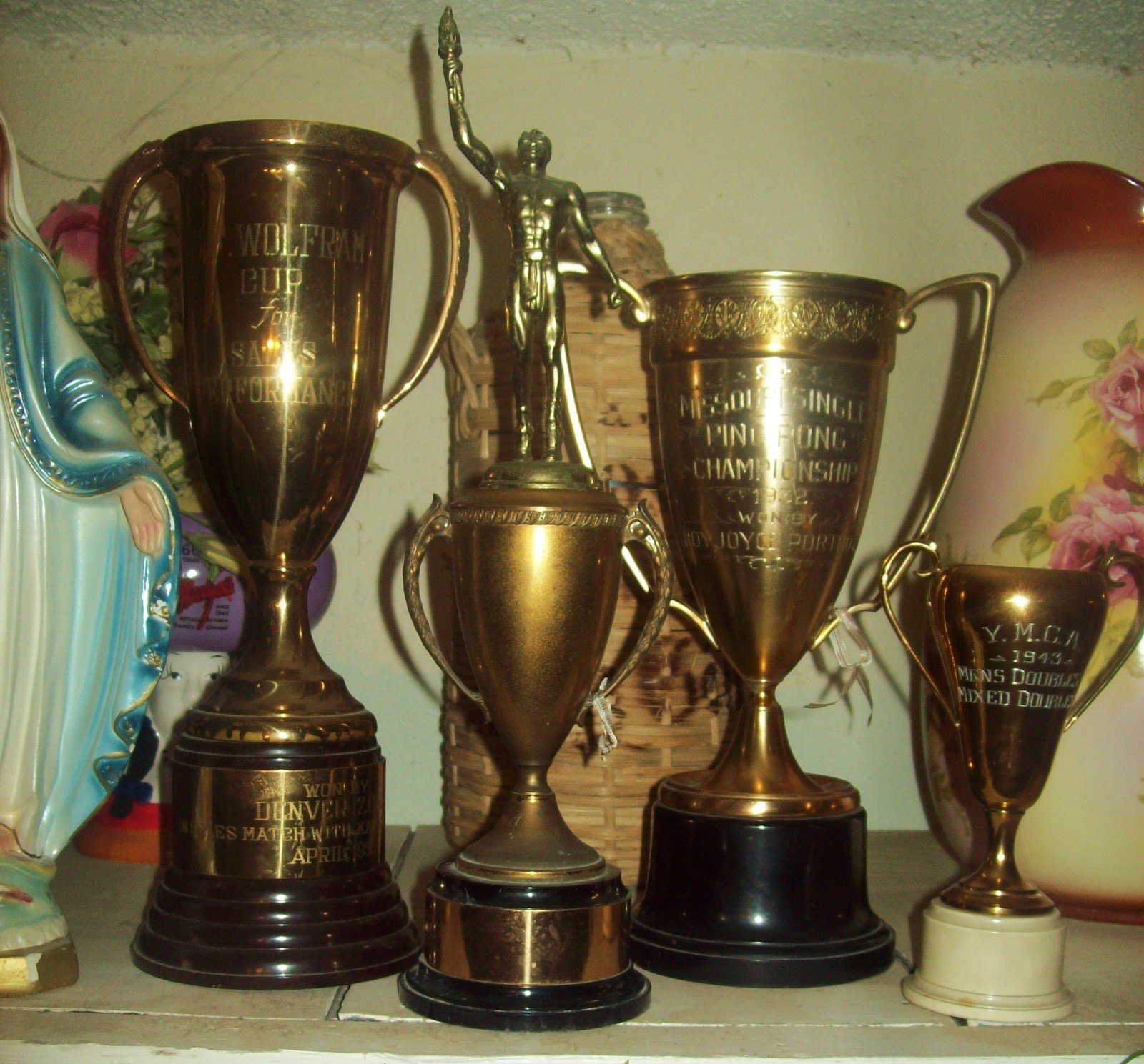 I had seen the Loving Cup with the Athlete Topper in one of Robert's FB Posts of his Booth and I thought it would be perfect for my Collection. As it turns out Robert's Booth had an Impressive Selection of Vintage Loving Cups and the ornately Engraved 1932 Ping Pong Championship Loving Cup was rivaling the Athlete Topper one in being a Fav... vying for being chosen... and so I just decided to get them both as a belated Christmas Present to Self!